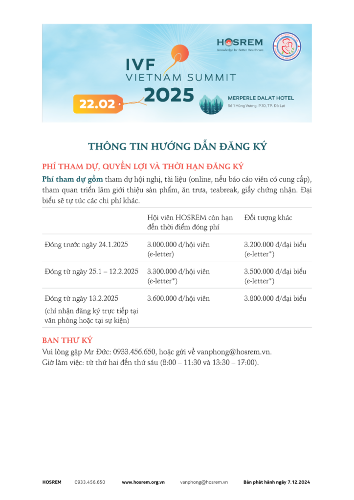 IVF VIETNAM SUMMIT 2025 Thứ bảy ngày 22 . 02 . 2025 THÔNG BÁO LẦN I