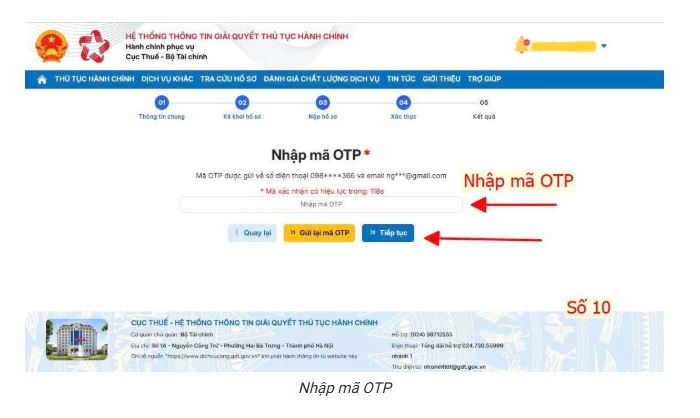 Bước 11: Nhập mã OTP và bấm “Tiếp tục“