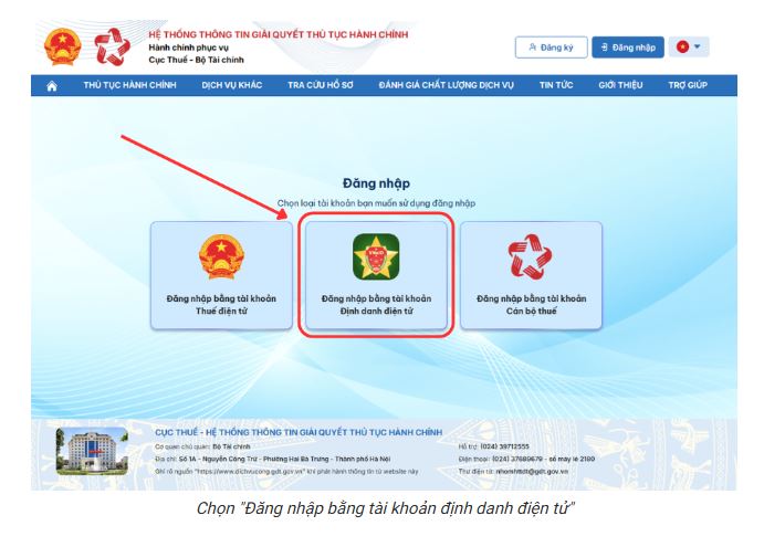 Bước 2: Chọn “Đăng nhập bằng tài khoản định danh điện tử”