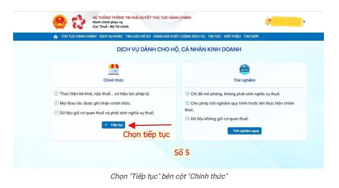 Bước 5: Ở cột Chính thức, Chọn “Tiếp tục“