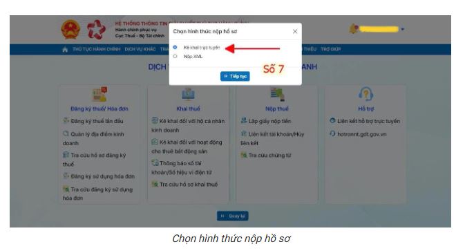 Bước 7: Chọn hình thức nộp hồ sơ “Kê khai trực tuyến“