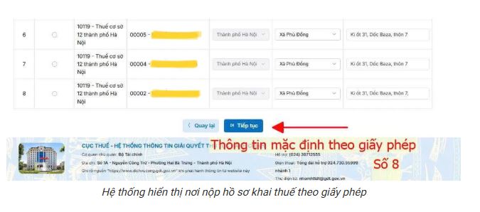 Bước 8: Hệ thống sẽ tự hiển hiển thị nơi nộp hồ sơ khai thuế