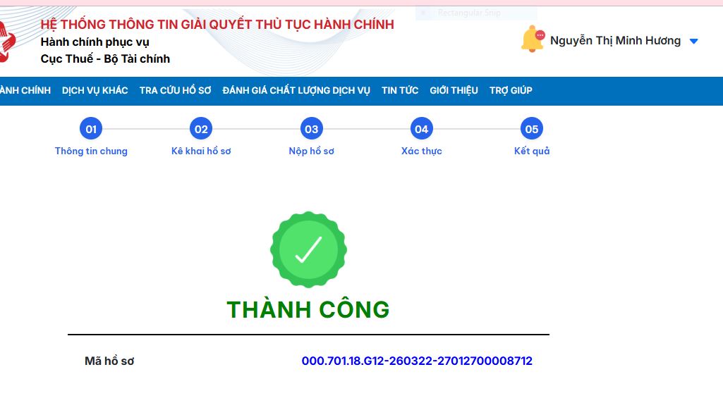 Màn hình thông báo “Thành công” là bạn đã hoàn tất việc kê khai các tài khoản, ví điện tử phục vụ mục đích kinh doanh.