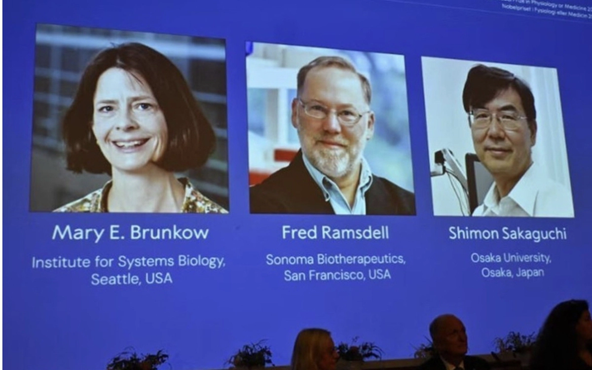 Theo Nobelprize, Hội đồng Nobel tại Viện Karolinska ở thủ đô Stockholm của Thụy Điển ngày 6/10 đã công bố giải Nobel Y sinh năm 2025 thuộc về 3 nhà khoa học Mary E. Brunkow, Fred Ramsdell và Shimon Sakaguchi “vì những khám phá liên quan đến khả năng dung nạp miễn dịch ngoại biên.”